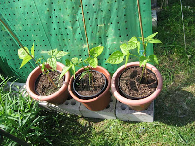 Bohnen, Gurken und Salate.